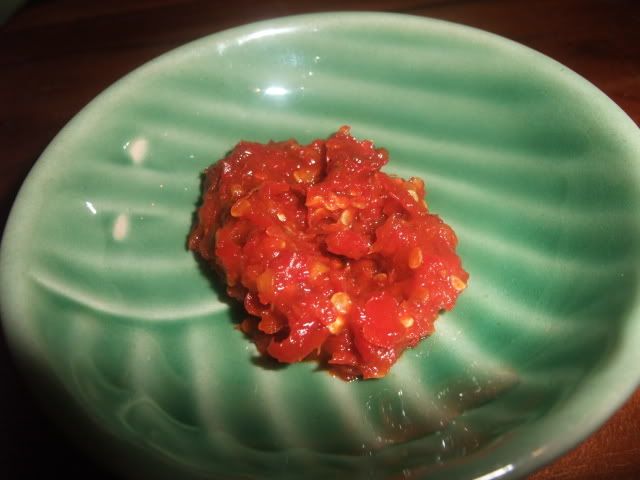 The sauce that comes with the fish. So spicy that it left me working out a sweat, all teary. But I like!
